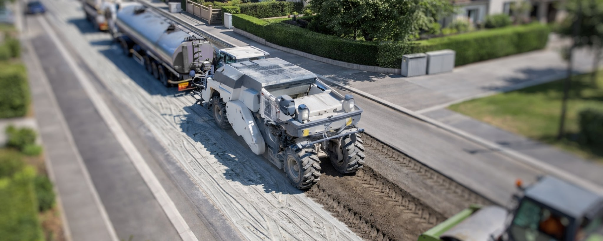 - In-place crushing and mixing of existing materials (recycled asphalt, aggregates, soils).